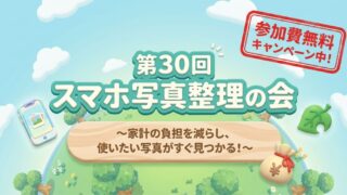 スマホ写真が見つからない・クラウド課金を減らしたい方へ。第30回スマホ写真整理の会を無料開催(2026年3月2日)。課金ゼロで7,000枚超を管理する方法を公開。家計の負担を減らし、写真をすぐ見つけられる仕組みを整えましょう。