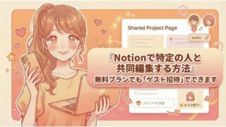 Notionの無料プランでも、特定の相手とページを共同編集できます。やり方は「ゲスト招待」を使うだけ。メンバー追加との違い、編集可能の設定、つまずきやすいポイントまでやさしく解説します。