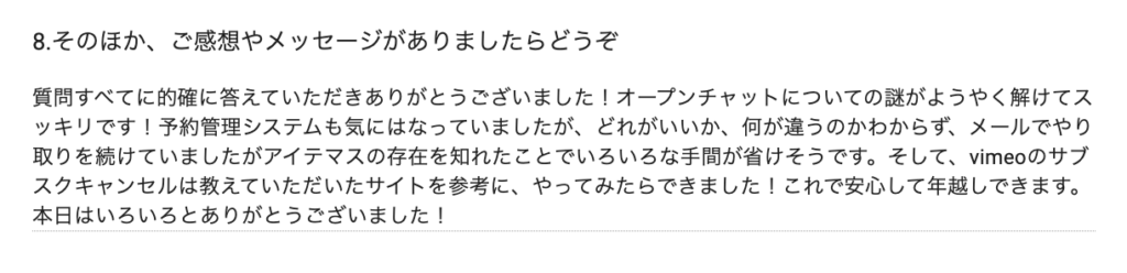 「聞いてくれて助かりました〜」