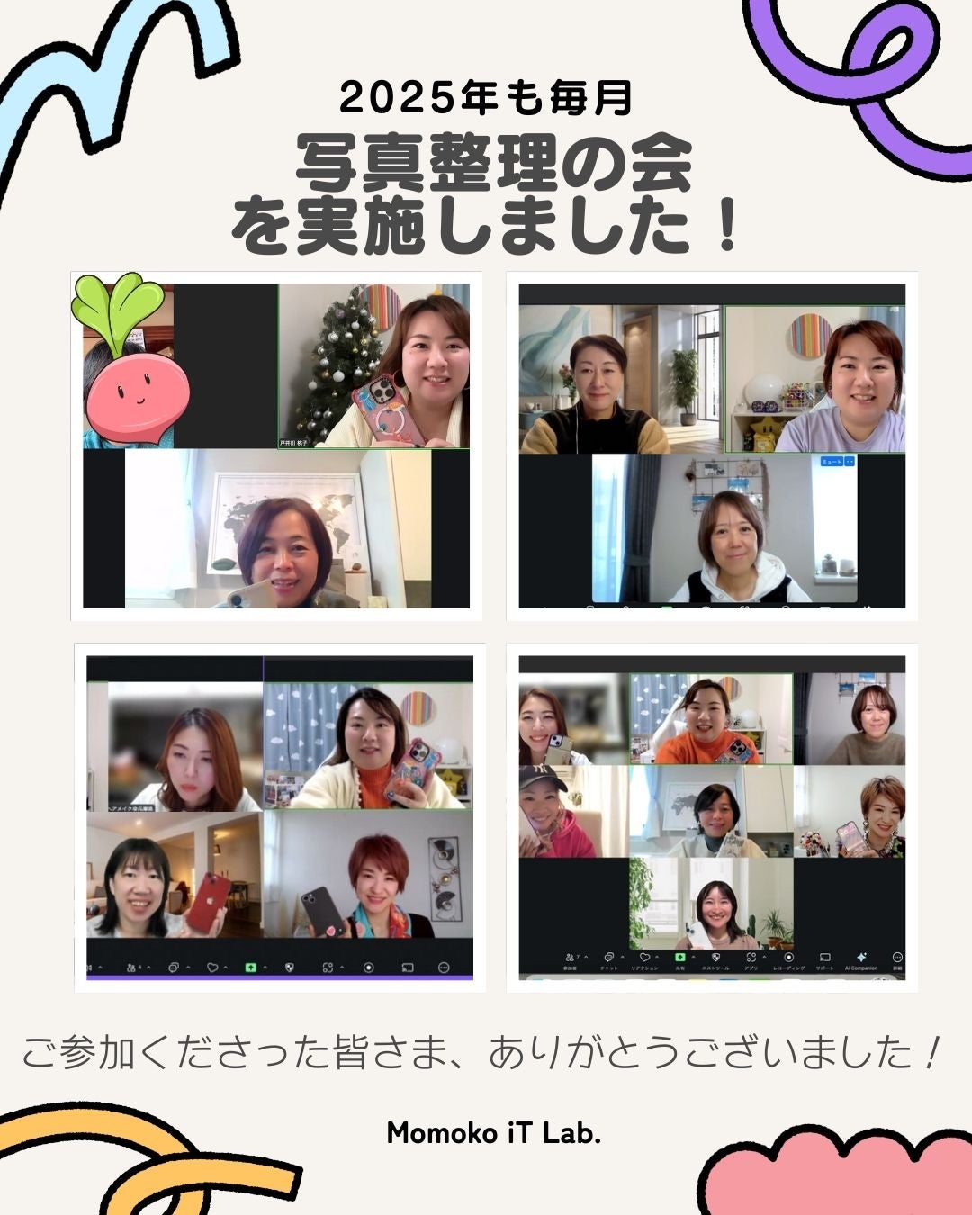 スマホ1台で、オンライン(ZOOM)参加・写真整理されている方もいます。