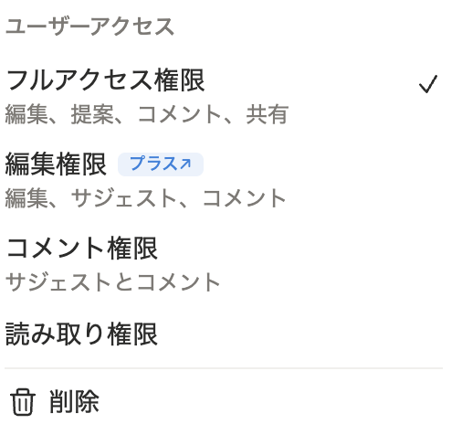 | フルアクセス | 全てできる | 一緒に共同編集したいとき(無料) |