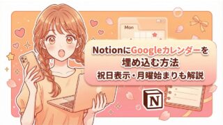 04 遊びながら学ぶ・iTノウハウ NotionにGoogleカレンダーを埋め込む方法|祝日表示・月曜始まりも解説 NotionにGoogleカレンダーを埋め込む方法を画像付きで解説。通常表示では出ない日本の祝日を表示するコツや、月曜始まりへ変更するカスタマイズ手順までわかりやすく紹介します。 2026.04.04 04 遊びながら学ぶ・iTノウハウ