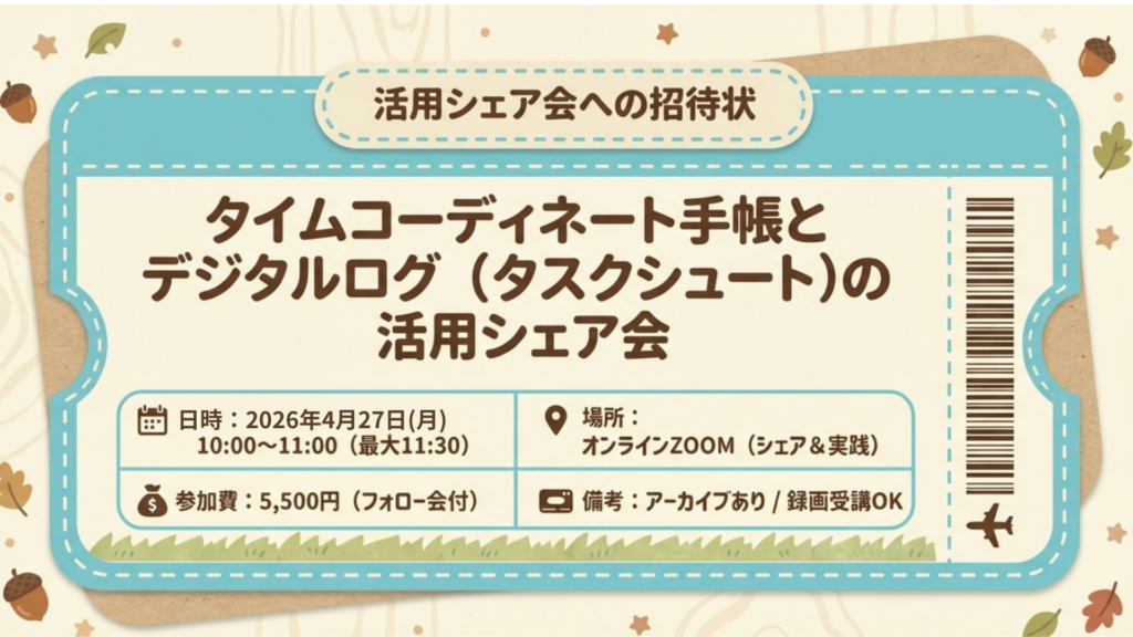 第2回タイムコーディネート手帳とデジタルログ(タスクシュート)の活用シェア会
