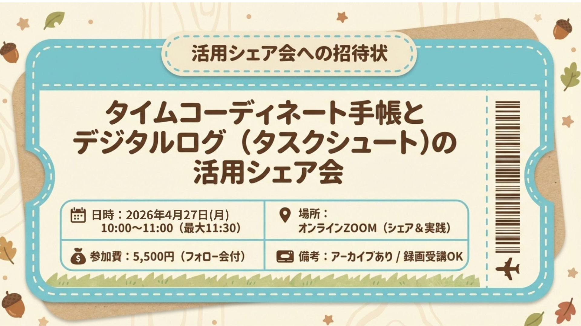 形式:オンラインZOOM(シェア&実践) アーカイブあり/録画受講OK
